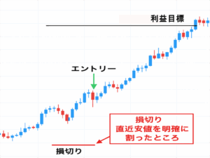 (上昇トレンドの押し目買い → 安値割れで損切)